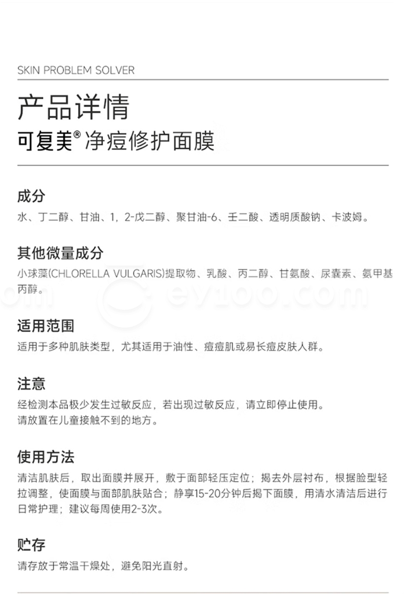 适用范围:适用于多种肌肤类型,尤其适用于油性、痘痘肌或易长痘皮肤人群。