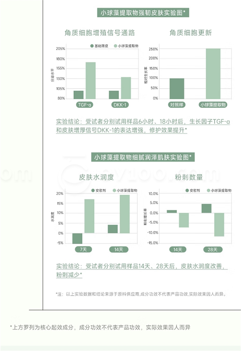 成份:水、丁二醇、甘油、1,2-戊二醇、聚甘油-6、壬二酸、透明质酸钠、卡波姆。其他微量成分:小球藻(CHLORELLA VULGARIS)提取物、乳酸、丙二醇、甘氨酸、尿囊素、氨甲基丙醇。