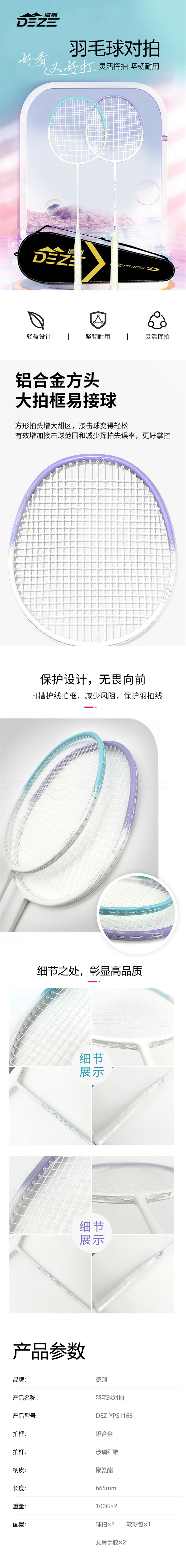 德则 羽毛球对拍(一体) DEZ-YPS1166