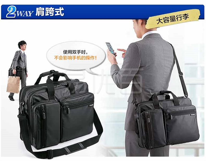 山业 15.6英寸防泼水3WAY电脑包 (黑色) 200-BAG048WP