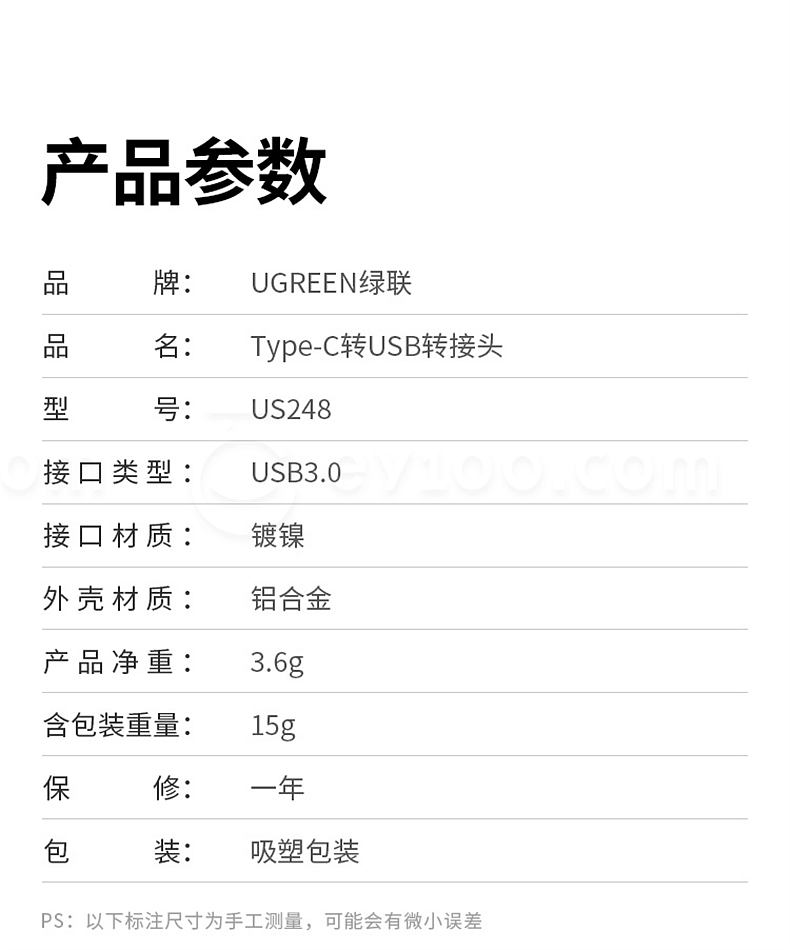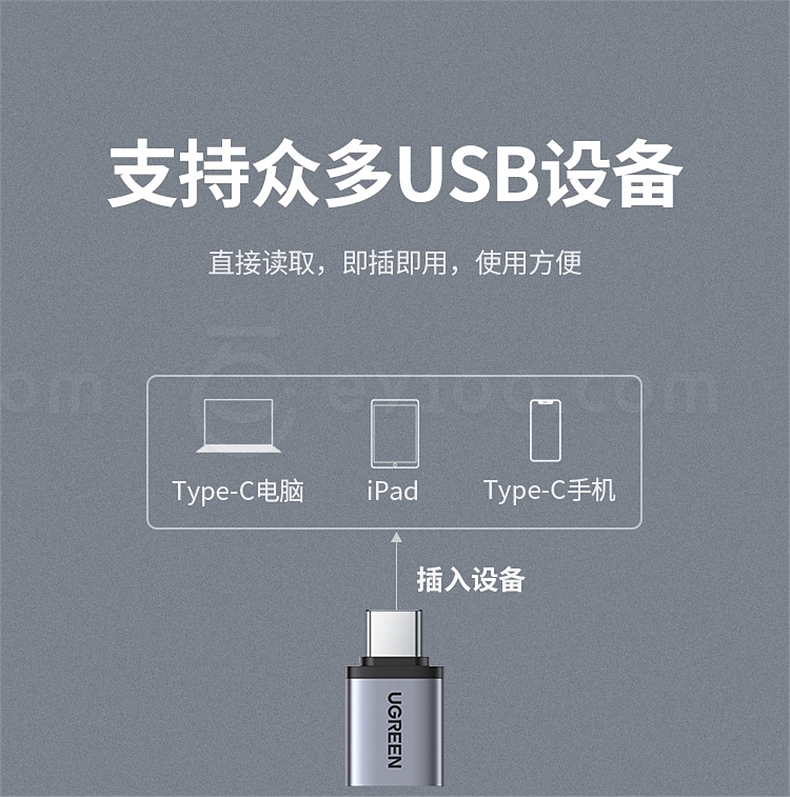 绿联 Type-C公转USB3.0母转接头 40702