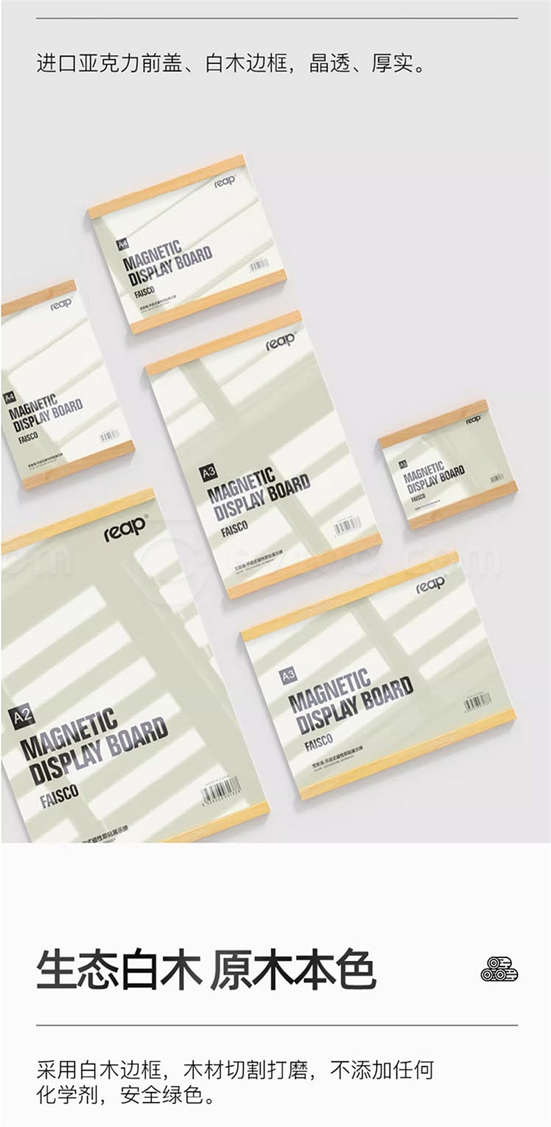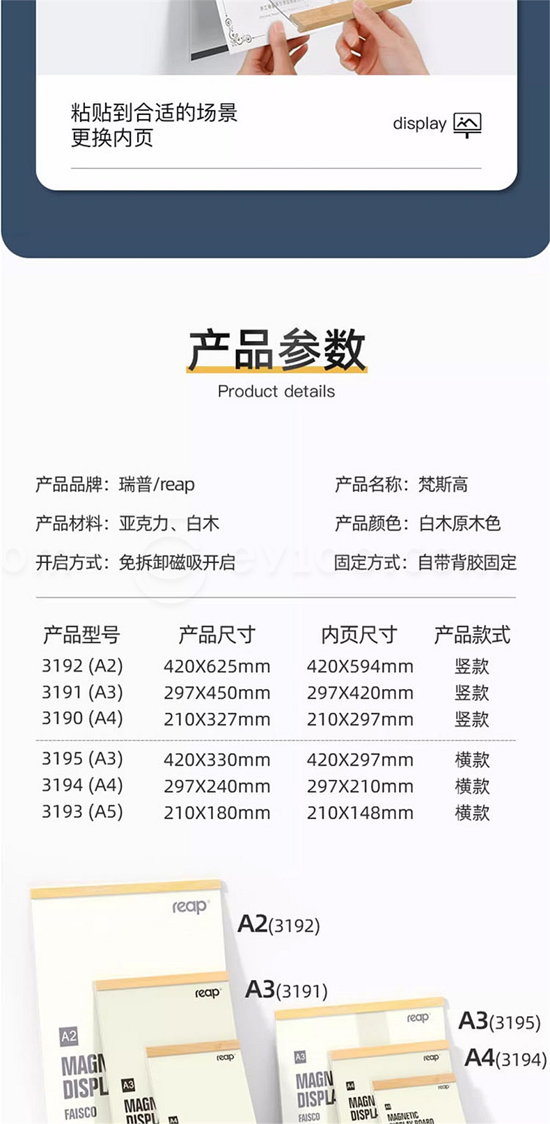 瑞普 (reap)实木+亚克力磁吸式展示框 A3 竖式(297*450mm) 3191