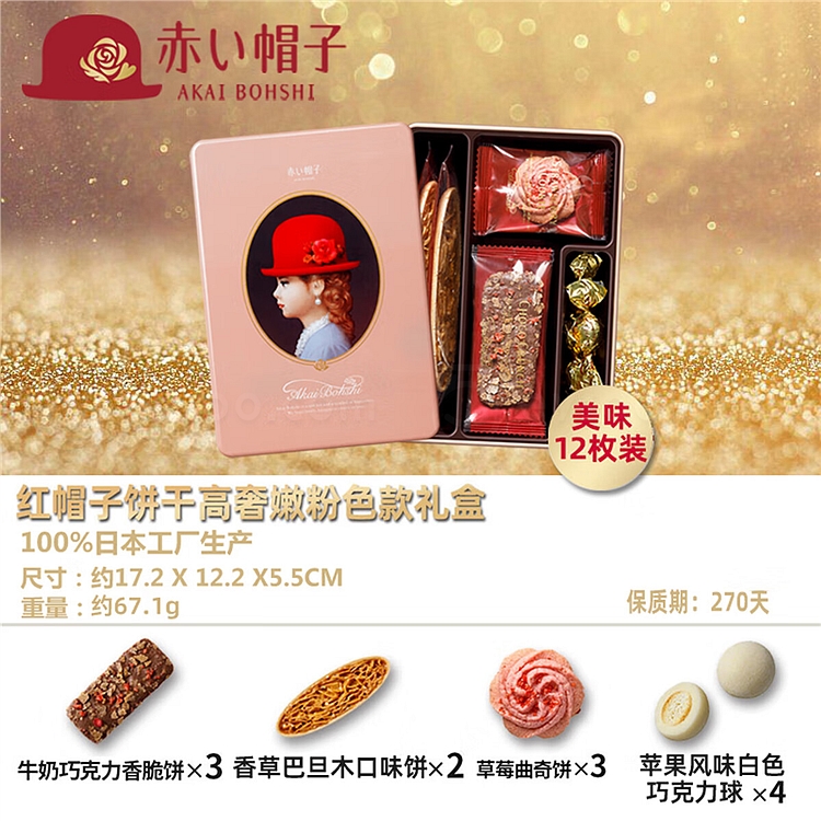 红帽子 巧克力什锦饼干嫩粉色礼盒 12枚 67.1g
