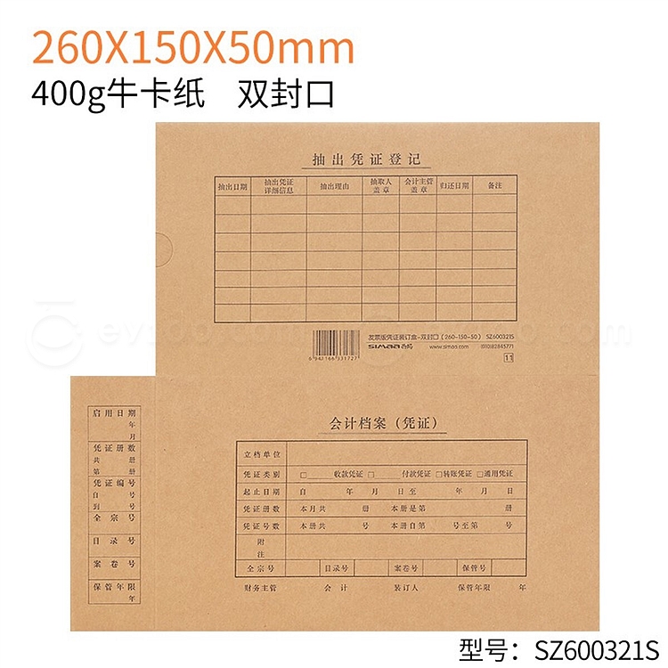 西玛 发票版凭证装订盒-双封口(260-150-50) 400克进口木浆 SZ600321S