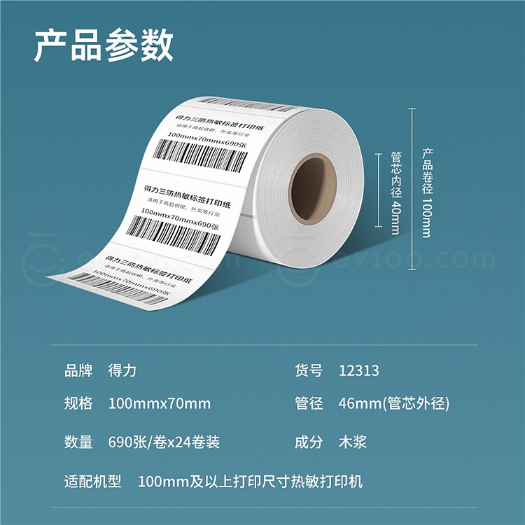 得力 塞纳河三防热敏标签纸 (白) 100*70mm-690枚/卷 12313