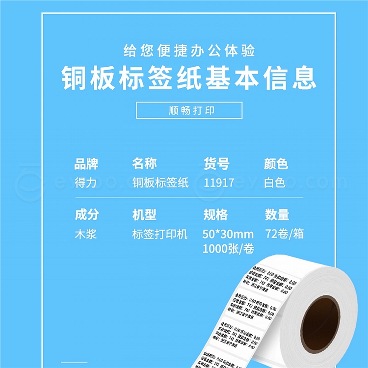 得力 铜版标签纸 (白) 50*30mm-1000枚/卷 11917