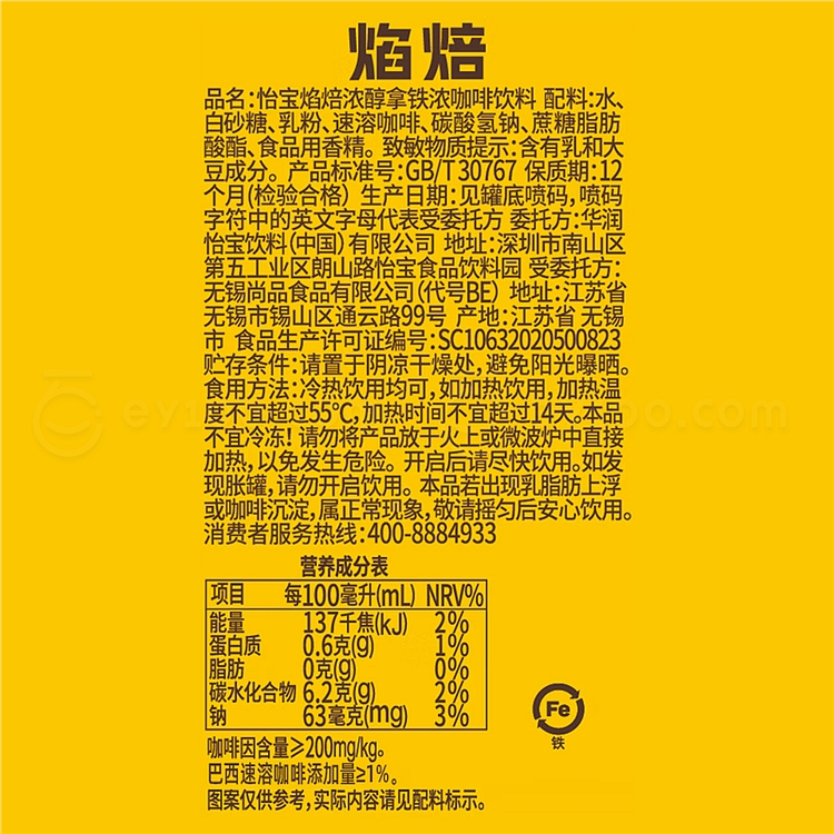 怡宝 焰焙浓醇拿铁浓咖啡饮料 180ml*24罐