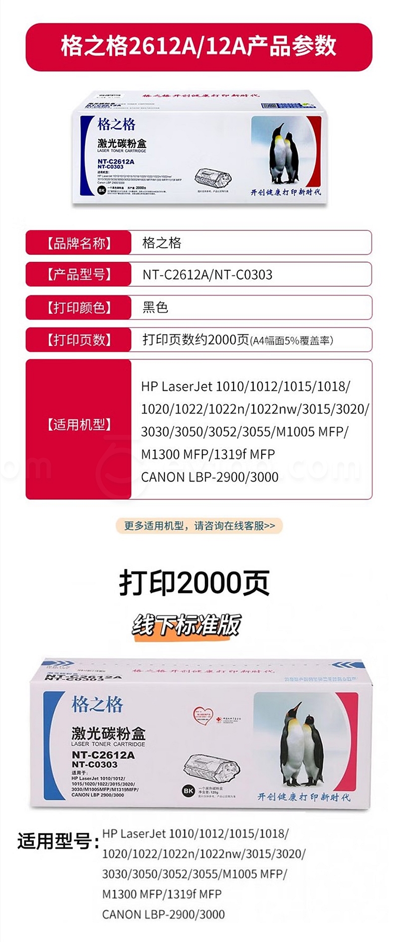 格之格 打印机硒鼓 (黑) NT-C2612A