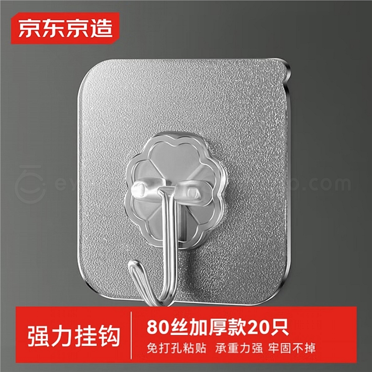 京东京造 免打孔无痕强力粘钩 80丝/20只装