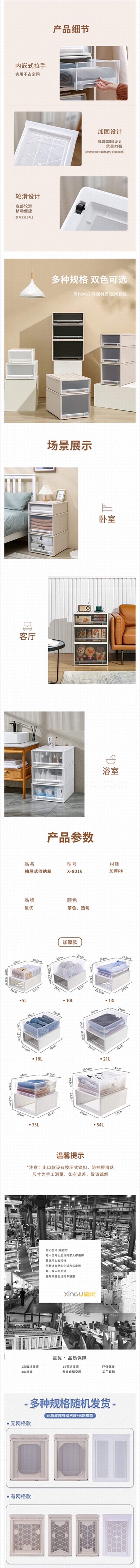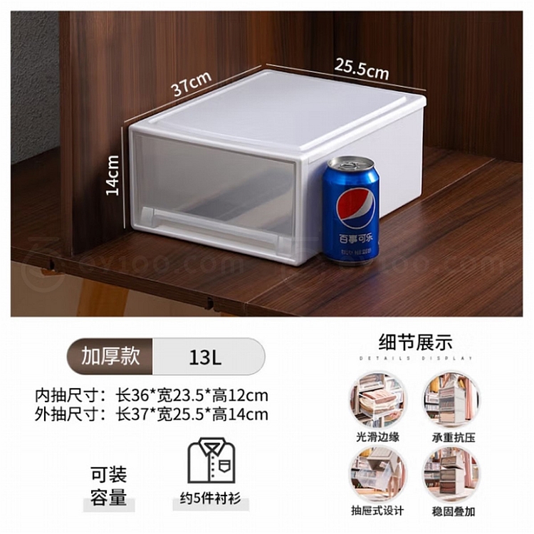 星优 抽屉式收纳盒 (透明) 13L