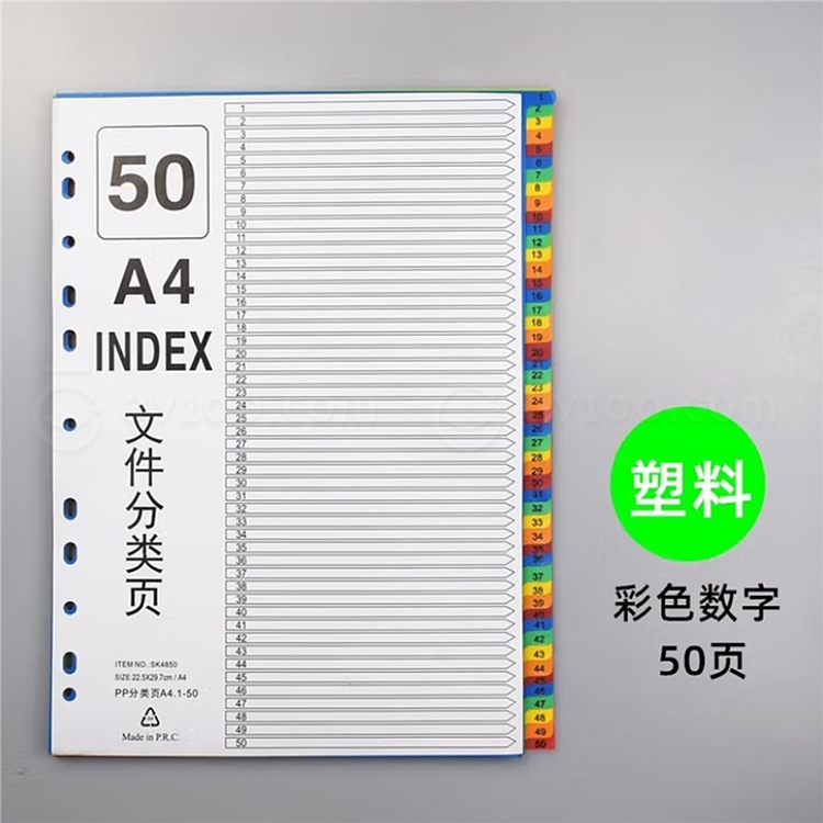 随心发 A4分类索引页 塑料彩色数字 50页/包