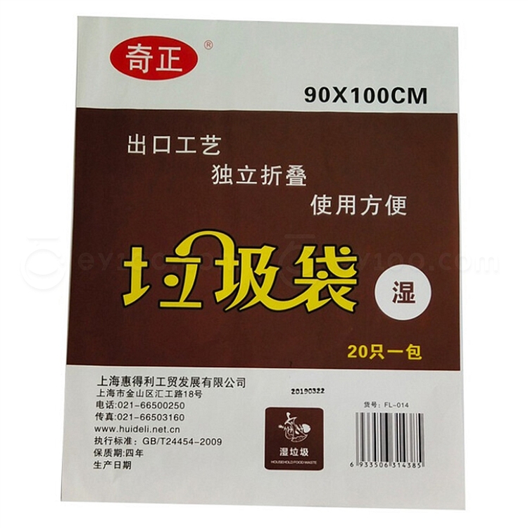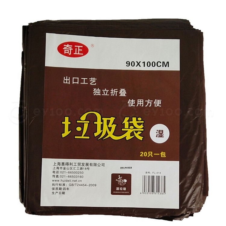 奇正 平口抽取式垃圾袋(湿垃圾) (咖啡色) 90*100cm 20只/包 FL-014