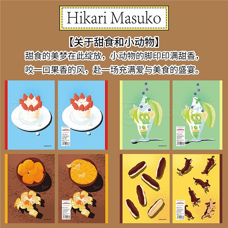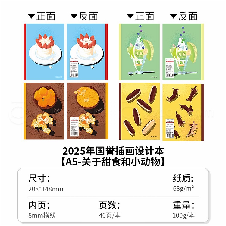 国誉 Illustrator无线装订本 关于甜食和小动物 (4色混装) A5/40页 8mm横线 4本/封 WCN-DNA54-J164