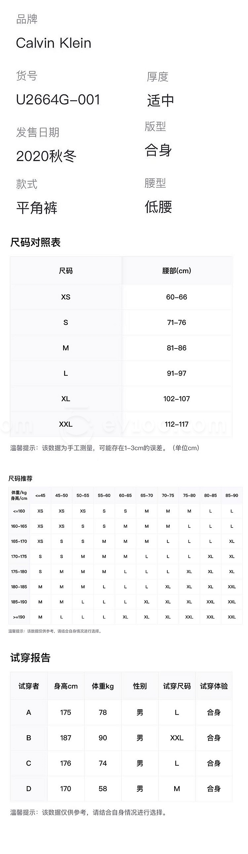 Calvin Klein 低腰平角内裤 男款3条装 (黑色) XL U2664G001