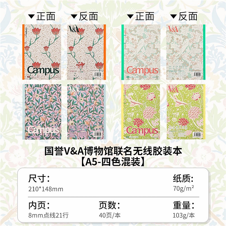 国誉 ×VA博物馆 无线装订本套装 (4色混装) A5/40页 8mm点线 4本/封 WSG-NBAMA54