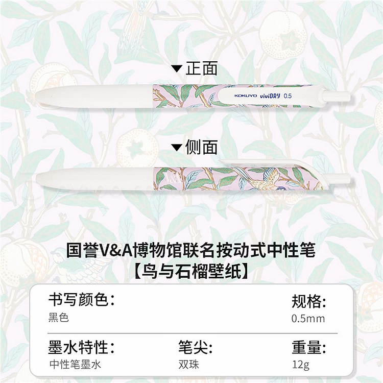 国誉 ×VA博物馆 中性笔 (Bird and Pomegranate) 0.5mm黑芯 WSG-PRAM3065-2