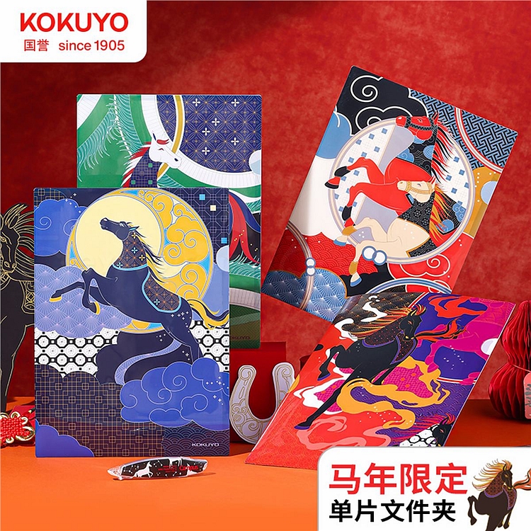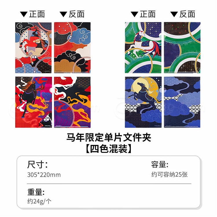 国誉 马年限定 单片文件夹 (4色混装) A4 4片装 WSG-FU4M710